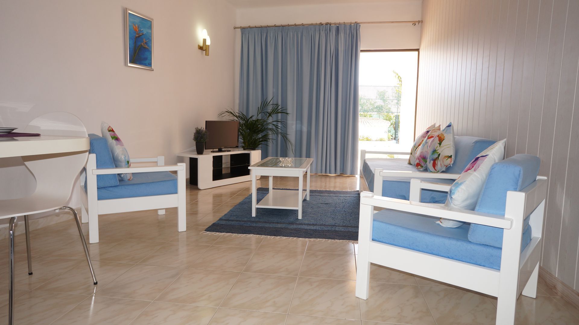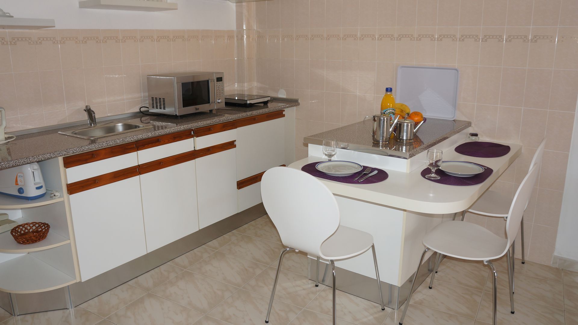 Este apartamento dispoe e Zona de Refeiçoes, area de Sala Estar, 2 quartos com 2 camas individuais cada.